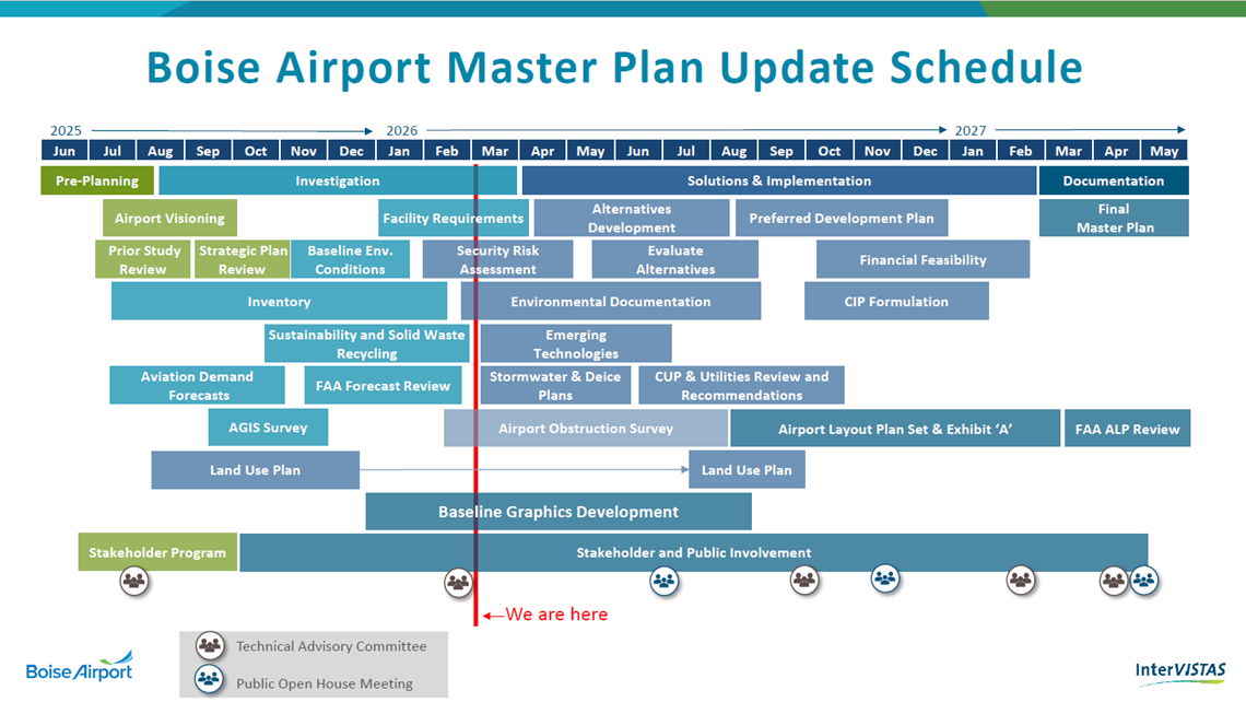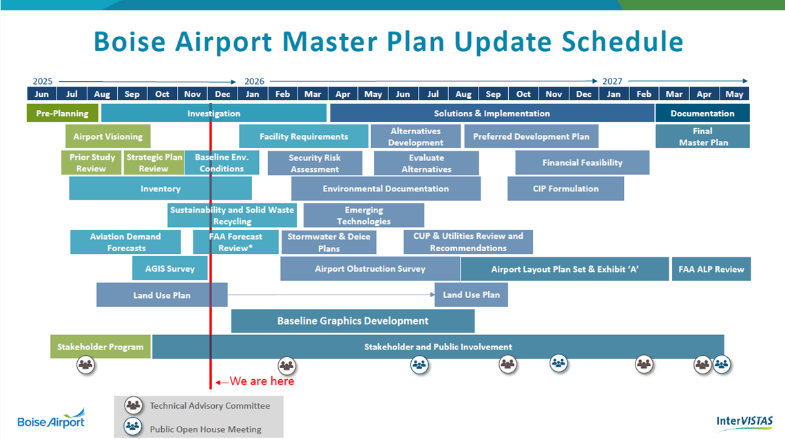 The Boise Airport Master Plan Update is a multi-year effort that is anticipated to continue through 2027.