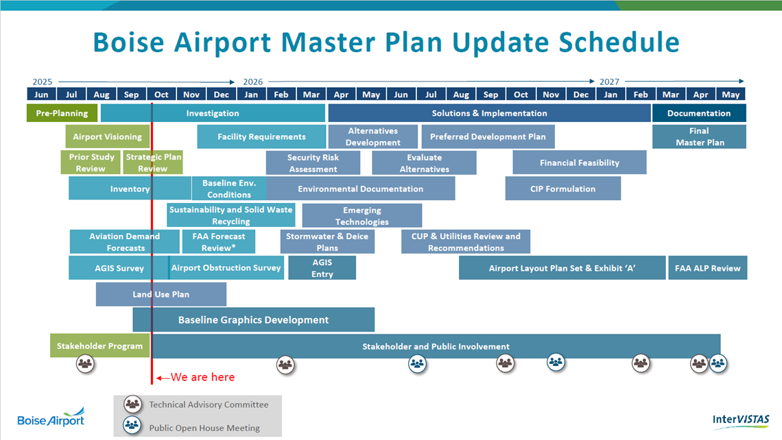 The Boise Airport Master Plan Update is a multi-year effort that is anticipated to continue through 2027.