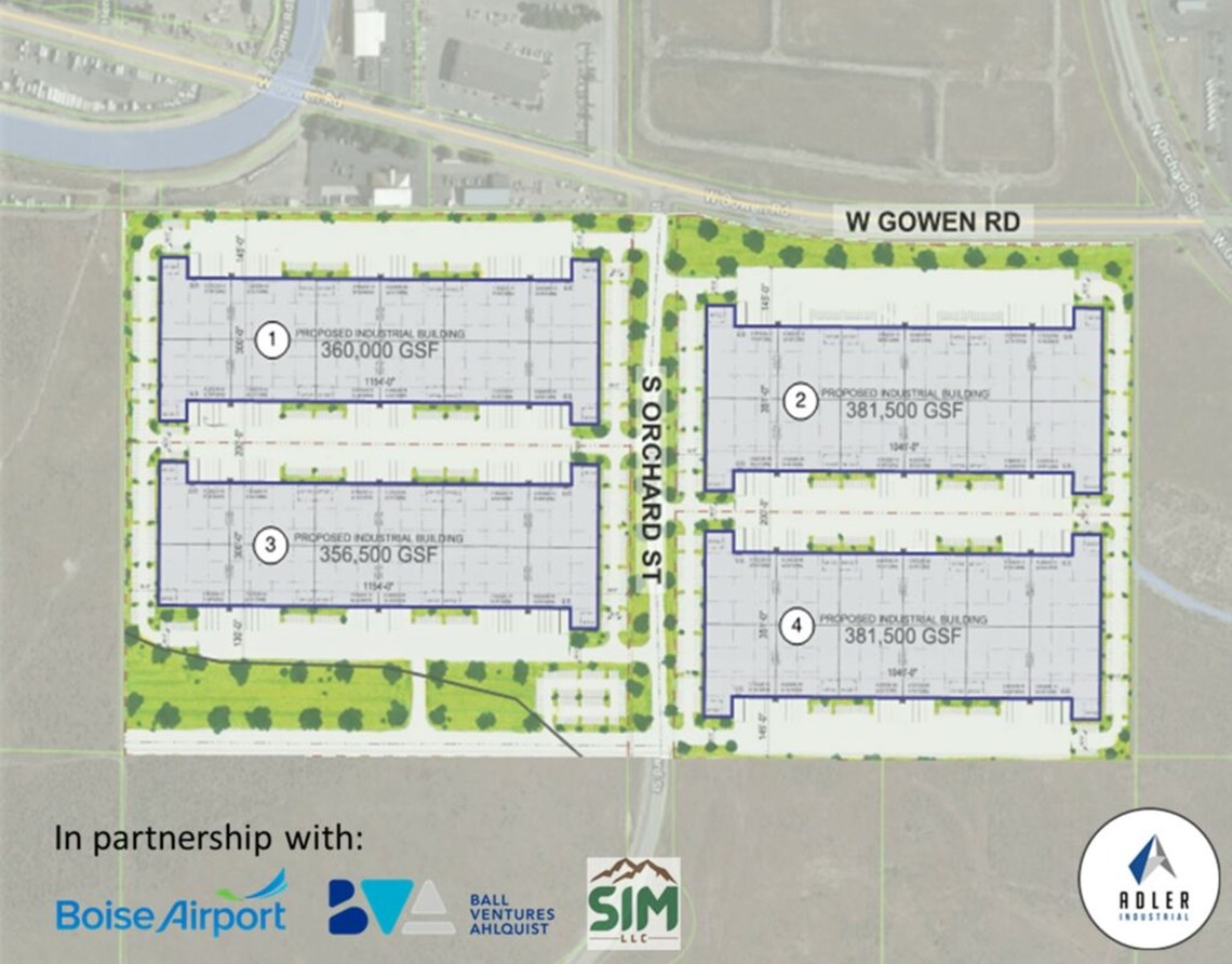 Potential to build more than 1.4 million square feet of industrial space bordering S. Orchard St and W. Gowen Rd. Tentatively planning to construct four large buildings, all over 350K square feet in close proximity to the Boise Airport and easy access to the freeway.